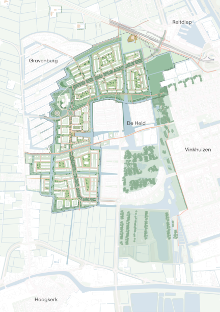 De Nieuwe Held ligt in de Westflank van Groningen, tussen de wijken Gravenburg en De Held, Vinkhuizen en Reitdiep. De ligging biedt een ideale combinatie van stadse voorzieningen en de rust van het Groningse wierdenlandschap.